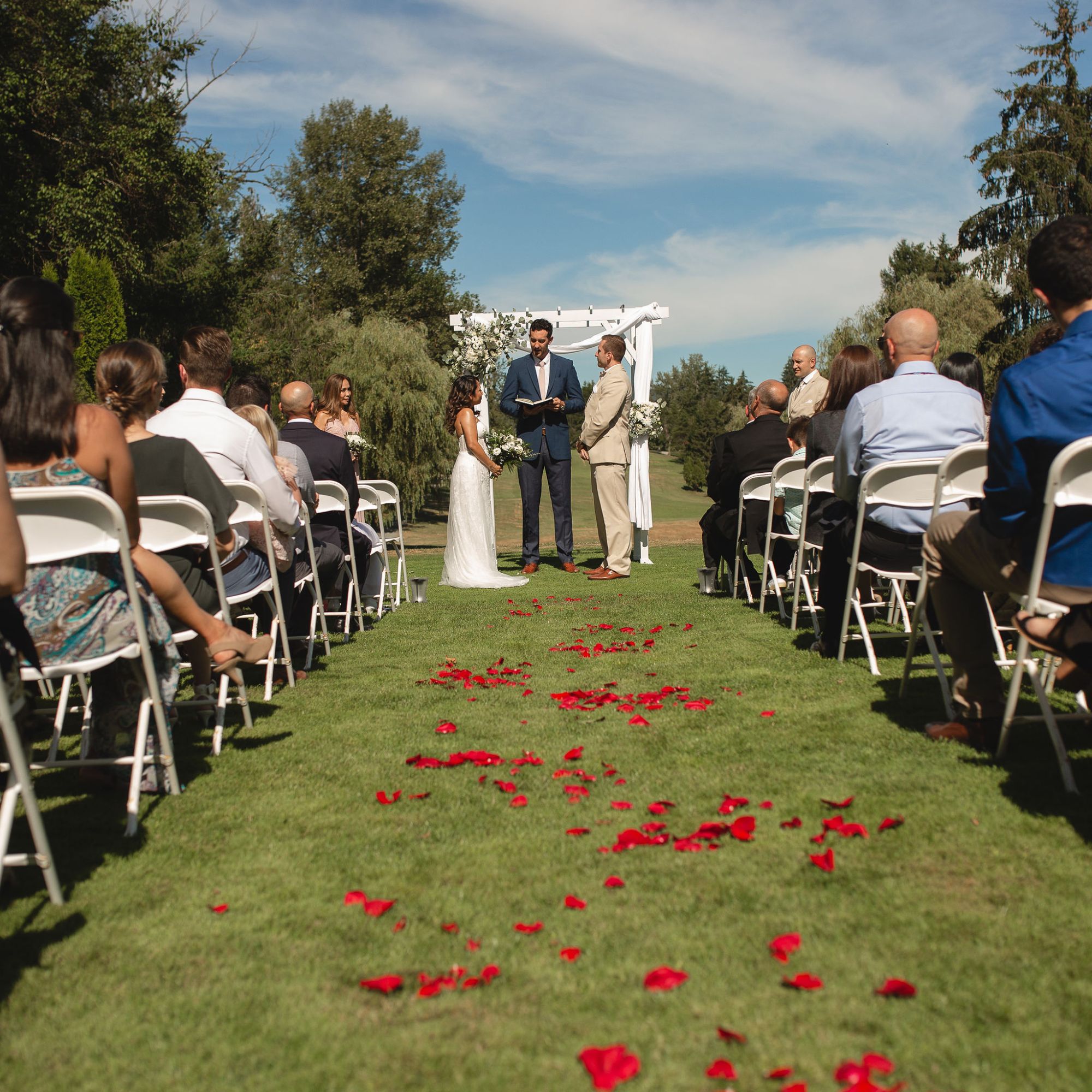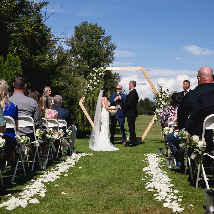 Weddings that are made for eternity. Outdoor ceremony with simple elegance to banquet rooms overlooking the golf course.