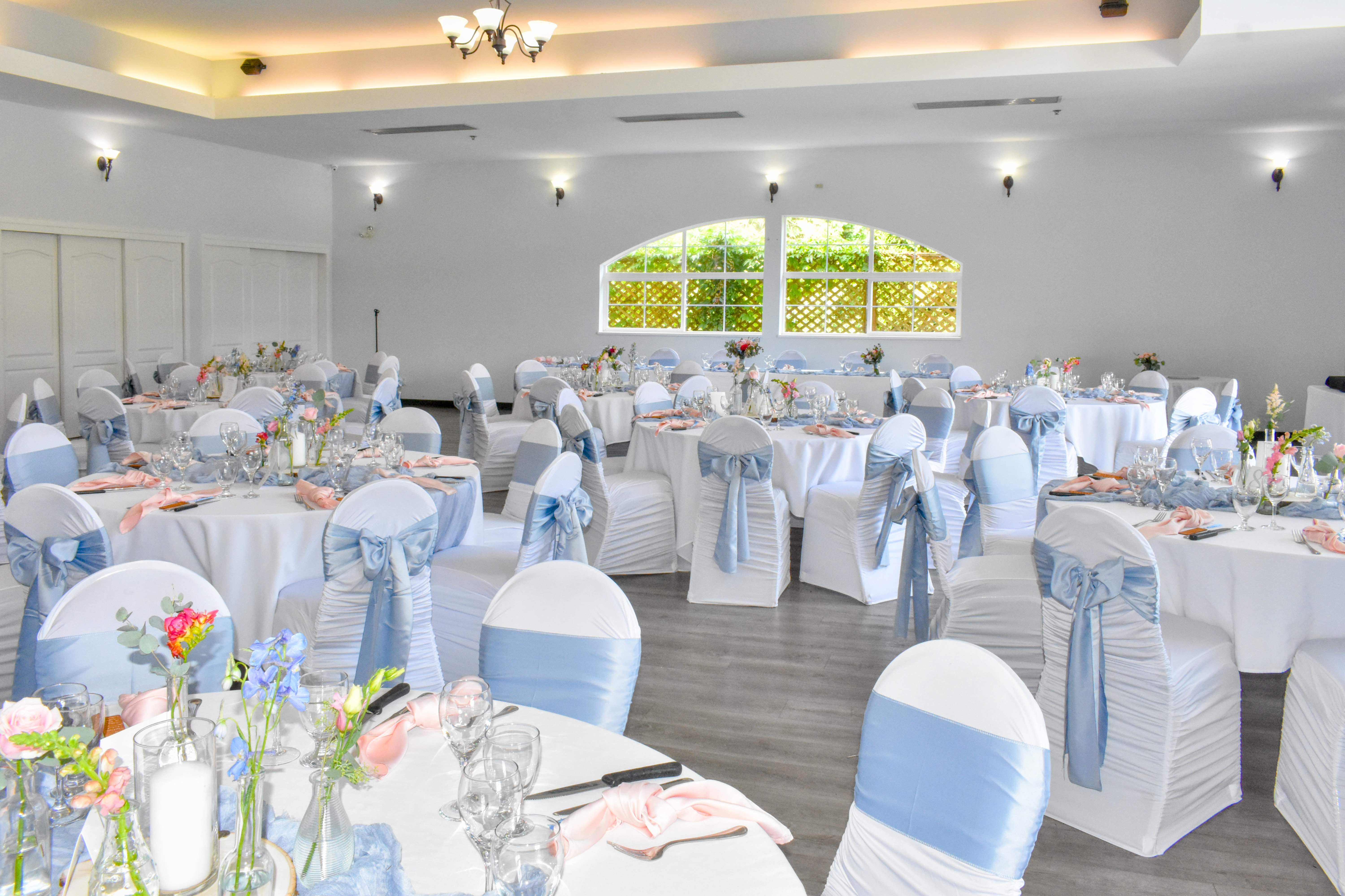 The Thompson room seats maximum of 70 guests. This room provides a bigger view of the golf course and all the greeneries and ensures more fun and lots of dancing space. We also provide dance space upon request or you can opt for more seating for more capacity. This can be combined with The Douglas to accommodate a maximum of 140 guests..